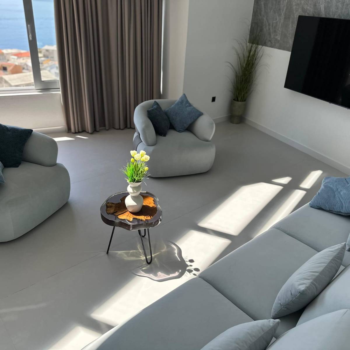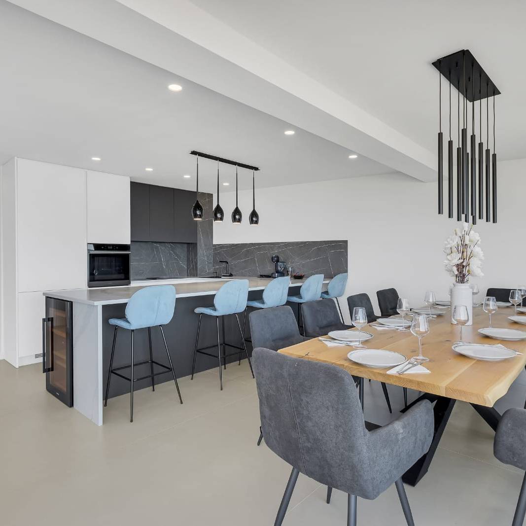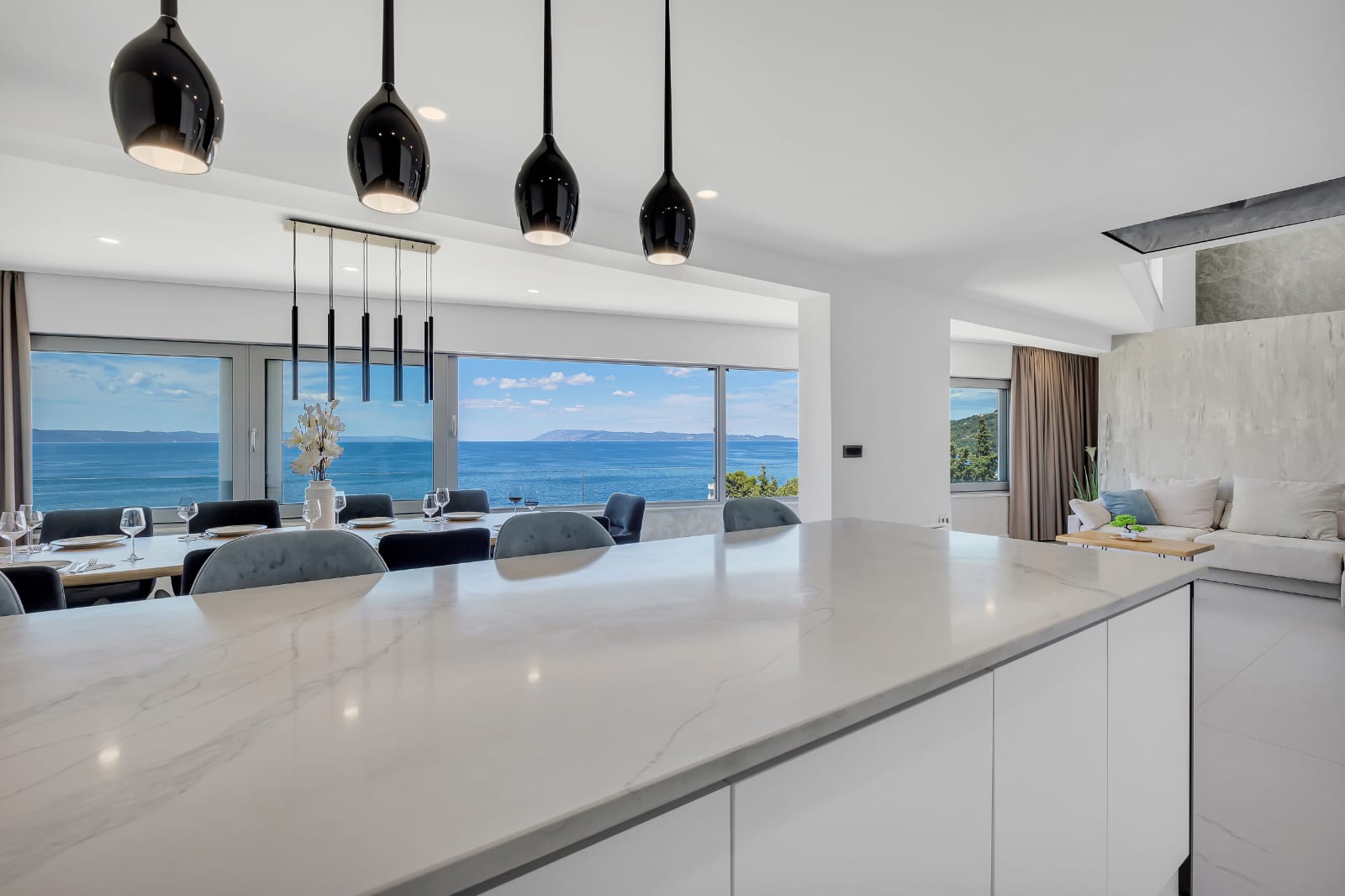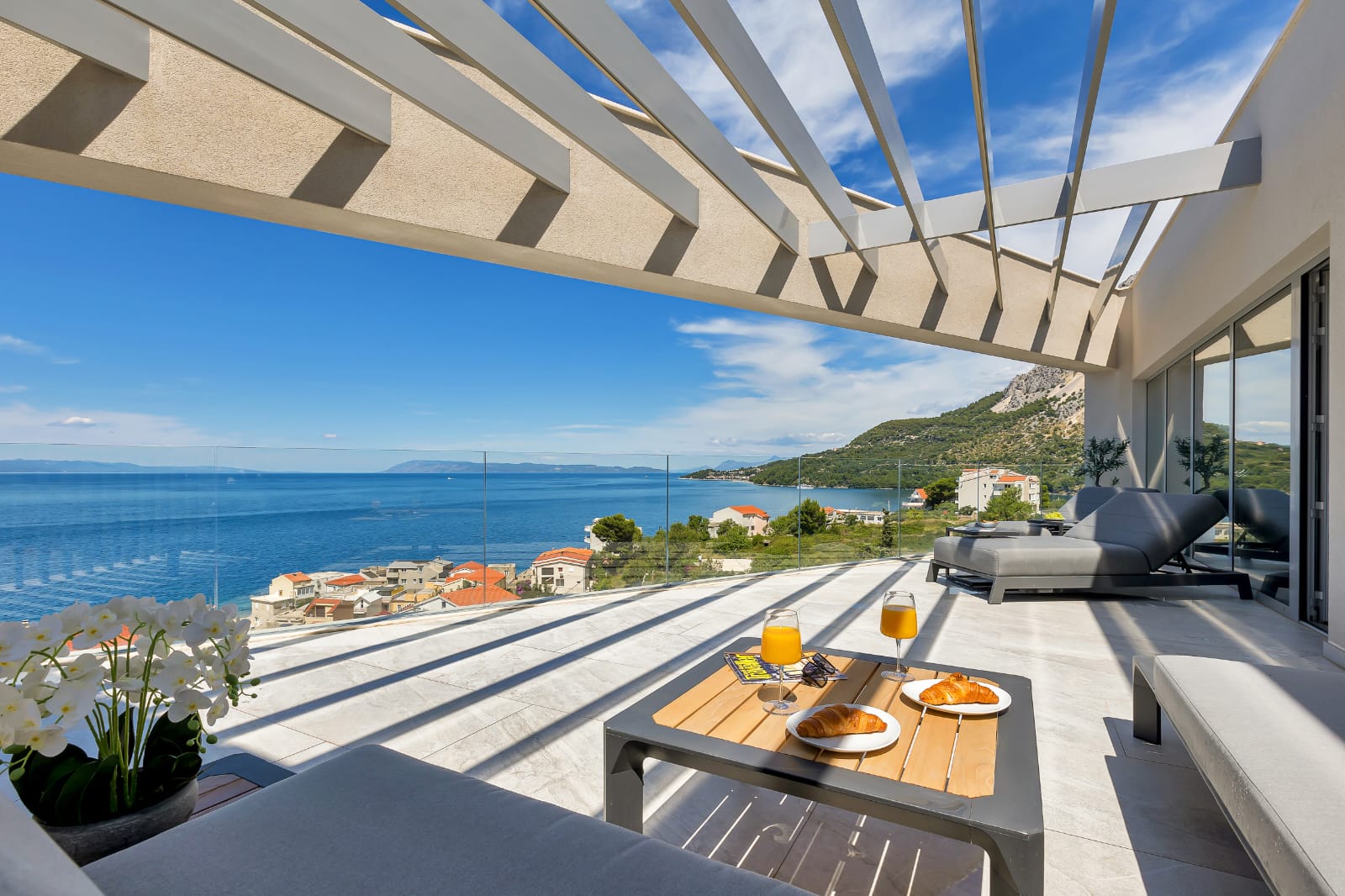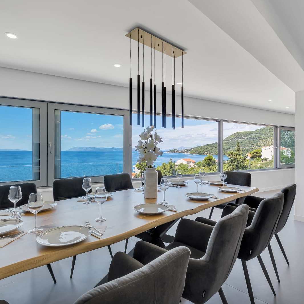 The penthouse boasts a stunning view and a terrace featuring a jacuzzi, offering a breathtaking view of the Adriatic Sea and the Makarska Riviera.