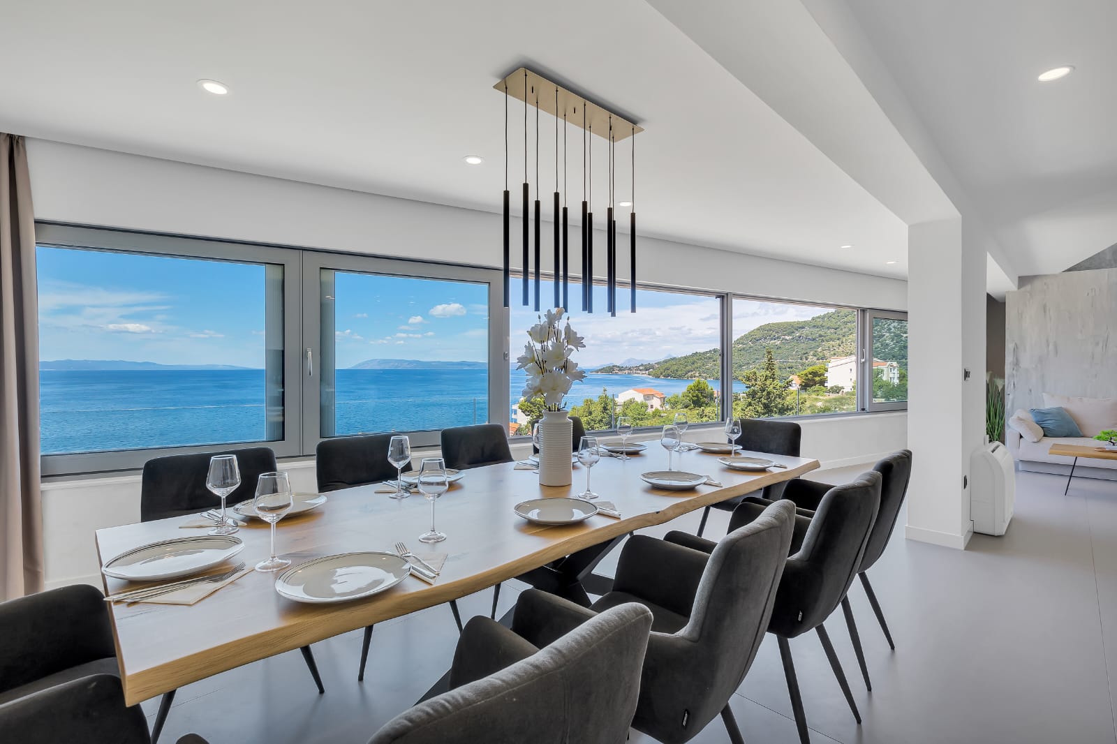 Penthouse Villa Soll in Drašnice offers a spacious, recently renovated apartment with four bedrooms and four bathrooms. Guests enjoy sea views, a sun terrace, and a private garden.